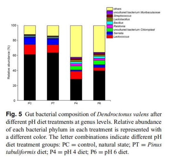 Effects of simulated gut pH environment on bacterial composition and pheromone production of Dendroctonus valens