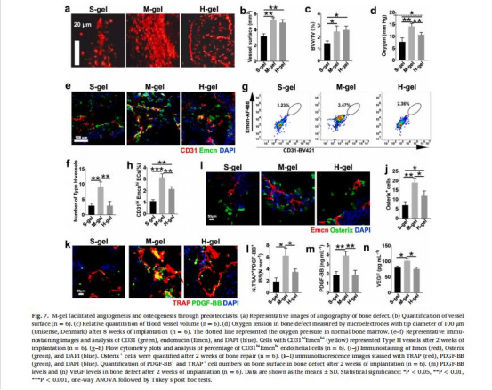 數據:中等剛度組(29.4 kPa)CD31hiEmcnhi型H血管數量較軟/高剛度組增加2倍(圖7g),PDGF-BB分泌量提高80%(圖7m)。