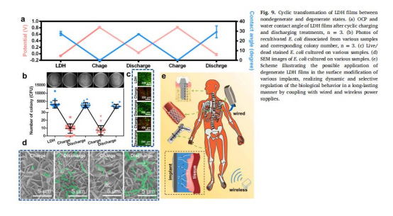 1.研究開發(fā)了一種基于鎳鈦層狀雙氫氧化物(Ni-Ti LDH)薄膜修飾的植入物,通過電化學(xué)充電使其轉(zhuǎn)變?yōu)橥嘶雽?dǎo)體狀態(tài)(空穴富集狀態(tài))。