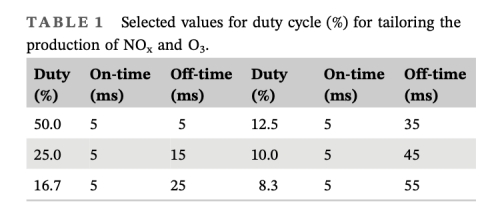 該研究開發(fā)了一種通過雙占空比(交替高/低占空比)控制表面介質(zhì)阻擋放電(SDBD)溫度的策略,實(shí)現(xiàn)氮氧化物(NO?)和臭氧(O?)的選擇性生成。研究發(fā)現(xiàn):
