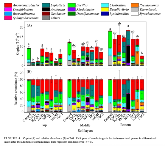豐度:Cu2?/Cr??/OH?顯著降低表層土壤產電菌豐度(16S rRNA基因拷貝數下降;圖4a)。