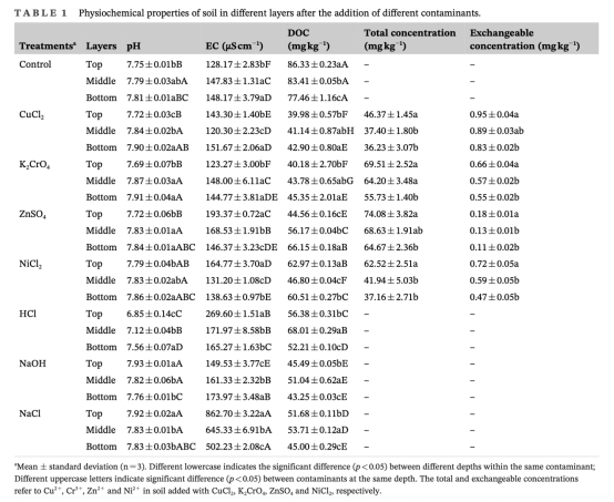 土壤污染物分布:表層土壤中可交換態重金屬濃度顯著高于中底層(Cu2?: 0.95 vs. 0.83-0.89 mg/kg;表1)。意義:說明污染物在表層富集但毒性被土壤緩沖作用削弱。來源表1。