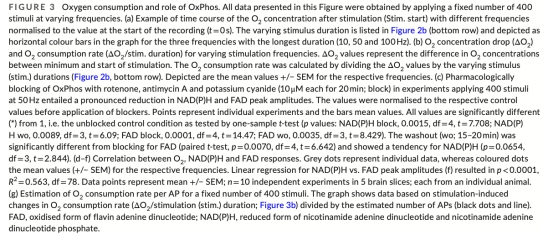 對比數據:>100 Hz時NAD(P)H/FAD峰值飽和而氧消耗率持續增加(圖3d-e)。