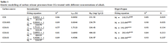 表1:CC碳釋放動(dòng)力學(xué)參數(shù)