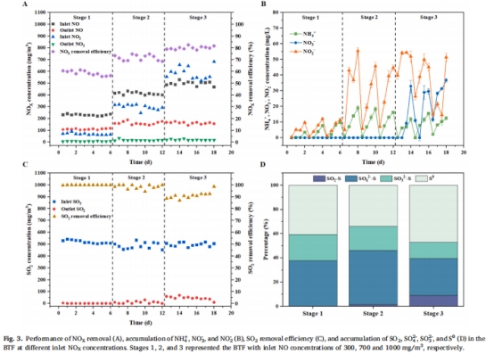 S?積累量隨NOx濃度升高(Stage 3達(dá)34.7%),凸顯硫回收潛力(圖3D)。