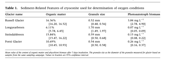 摘要探討了冰川表面沉積物(cryoconite)中氧合作用對有機質分解的影響。通過采集北極和歐洲大陸五個冰川的樣品,實驗模擬了靜置(stagnant)和機械混合(mechanically mixed)條件(模仿融水攪動),測量了氧垂直分布和有機質含量變化。結果發現: