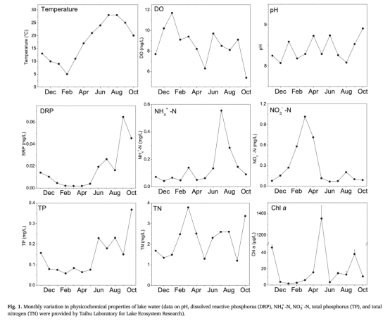 探究沉積物中DIN和DRP的時空動態如何通過影響營養鹽循環,驅動太湖藍藻水華的起始(四月)和維持(六月至八月)。