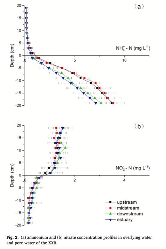 研究意義:揭示沉積物有機氮礦化釋放NH??、NO??在沉積界面耗竭的規律,證實下游湍流增強促進氮礦化和釋放,為內源污染機制提供證據。