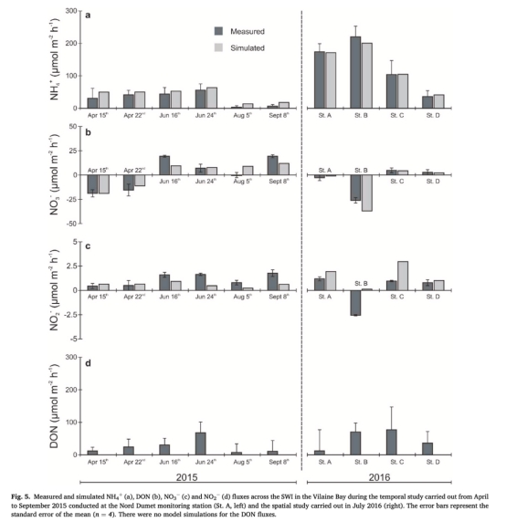 研究通過現場觀測、實驗室測量和反應輸運模型(RTM),探究了法國富營養化溫帶大型潮汐海灣——Vilaine灣(VB)底棲氮(N)循環的時空變化?;?015年單站時間序列(6次)和2016年多站空間調查的數據分析表明: