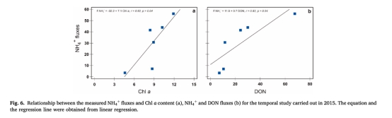 NH??通量與沉積物表層Chl a顯著正相關(r=0.82, p<0.05),證實硅藻水華驅動銨釋放(圖6a)。