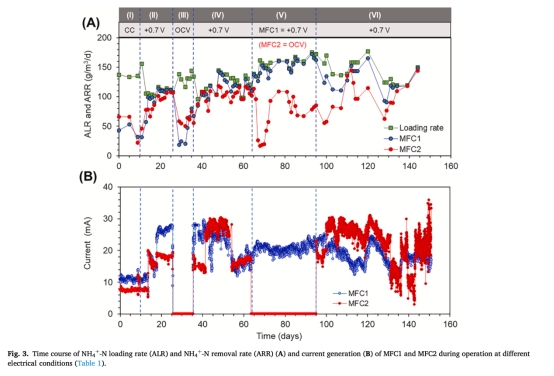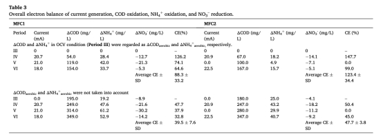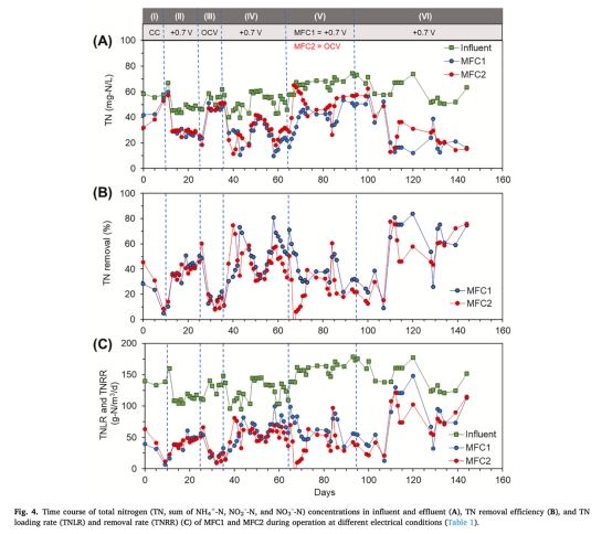 氮去除率數據:驗證固定陰極電位使NH??-N去除率提升3倍(vs. OCV),為MFC工藝優化提供關鍵參數(表1)。