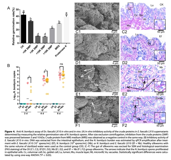 腸道共生細菌糞腸球菌LX10有助于防御家蠶微孢子蟲(Nosema bombycis)感染