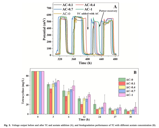 醋酸鹽在生物電化學系統中刺激四環素生物降解途徑