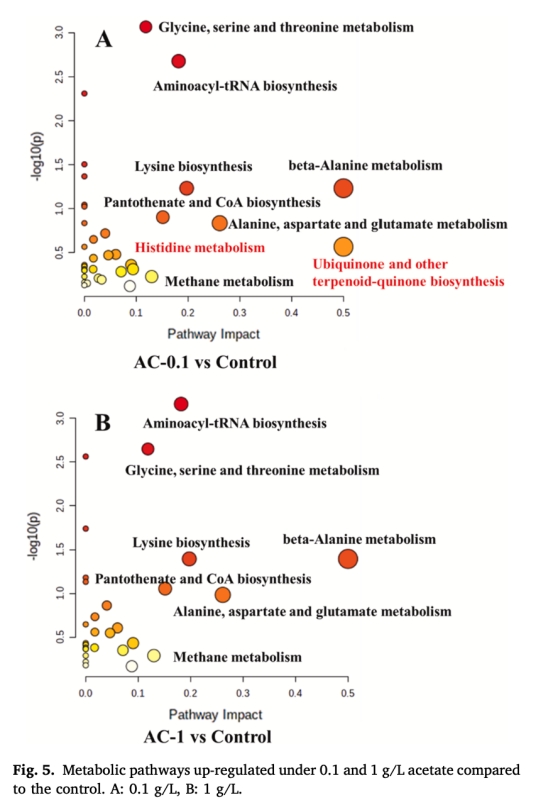 ? 數據:AC-0.1顯著上調泛醌/萜醌生物合成(ubiquinone biosynthesis)和組氨酸代謝(histidine metabolism),AC-1中這兩條通路被抑制。