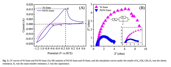 ? 數(shù)據(jù):添加750 mM叔丁醇(H*淬滅劑)使Pd/Ni foam的E?降至14.1%