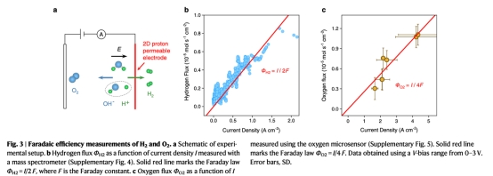 ? 數據:H?與O?生成速率嚴格滿足2:1比例(Φ_H? = I/2F, Φ_O? = I/4F),效率100%