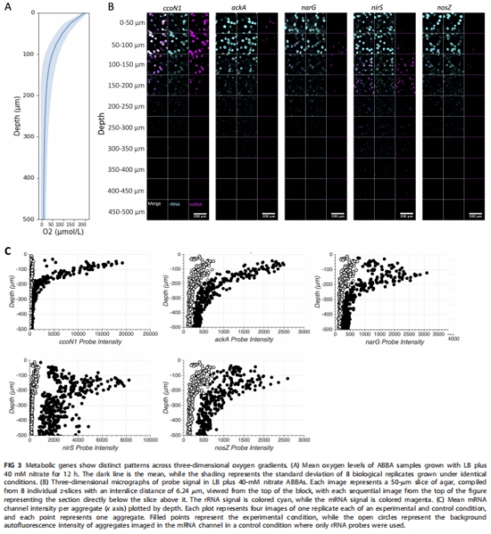 研究意義:證實氧梯度驅動代謝分區,反硝化基因表達受一氧化氮信號級聯調控。