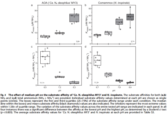 氨氧化古菌具有廣泛的細胞氨親和力