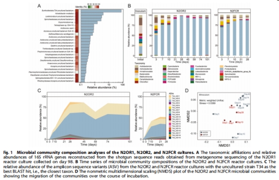 核心菌群:未培養伯克霍爾德菌目(Burkholderiales)占主導(>87%),其基因組缺乏nosZ基因(圖1)