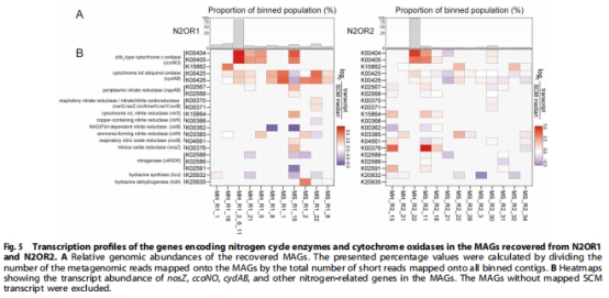 基因豐度:NosZG5(clade II)在N?OR2反應器占比86.8%