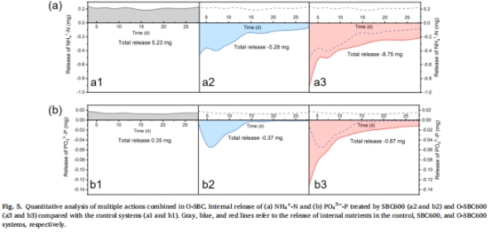 研究意義:證實O-SBC通過物理阻隔、吸附與ONB釋放三重作用逆轉(zhuǎn)沉積物營養(yǎng)釋放。