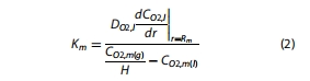 通過DO剖面斜率(drdCO2,l)計算氧氣通量(公式2),量化硅膠膜與微膜束的傳質差異(圖5)。