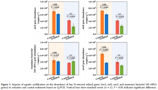 本研究揭示了水生酸化對河口與海岸帶沉積物中微生物介導的氮去除過程的影響: