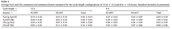 N?O排放因子:0.93±0.34%(12小時周期)、1.00±0.62%(8小時周期)。