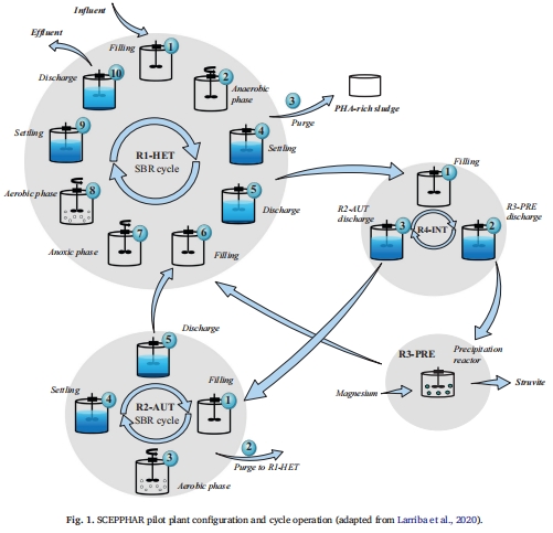 中試系統:在西班牙Manresa污水處理廠搭建SCEPPHAR中試系統(圖1),包含四個反應器: