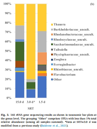 SRT=3.0天時Thauera相對豐度達80%(vs. 1.5天29%,15.0天23%)。