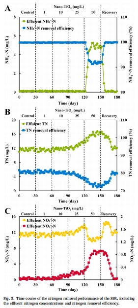 恢復(fù)潛力:停用nano-TiO?后30天,脫氮效率與N?O排放完全恢復(fù)(圖3-4)。