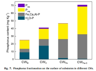 CWFe-C中穩(wěn)定態(tài)磷(Fe,Ca,Al-P + Porg)占比96.2%,對(duì)照組H?O-P為主(不穩(wěn)定)。