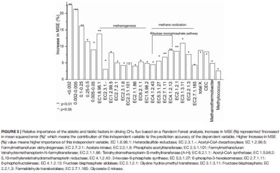 RF分析:土壤顆粒<0.002 mm和CEC是CH?通量前兩位預(yù)測(cè)因子(圖5)。