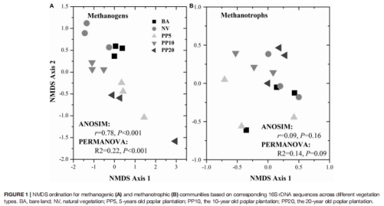 意義:造林未改變甲烷氧化菌群落結(jié)構(gòu),但抑制了產(chǎn)甲烷功能基因表達(dá)。