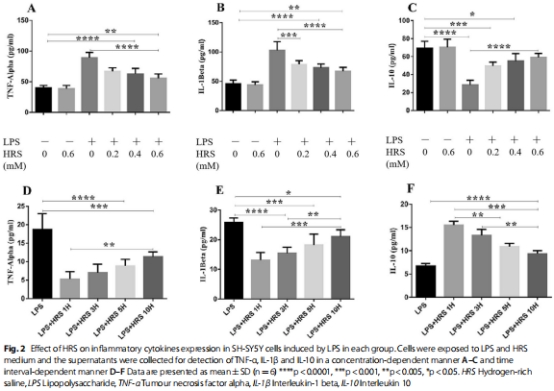 腦組織IL-10:LPS組38.38±7.91 pg/mL → HRS組57.74±9.62 pg/mL(p<0.05)。