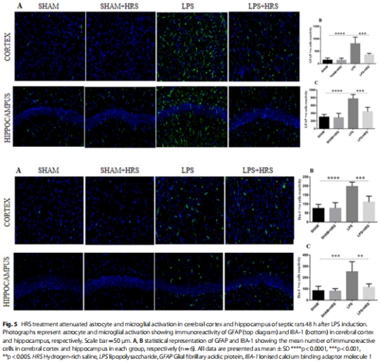 皮質GFAP+細胞:LPS組41.2±3.8 → HRS組22.5±2.1(p<0.001)。