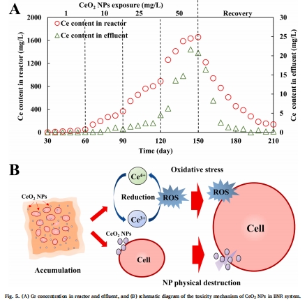 接種活性污泥,在穩定BNR性能后,分階段添加CeO? NPs(0、1、10、25、50 mg/L),暴露周期151天(Fig. 1)。