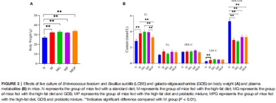 LCBE+GOS顯著降低小鼠總膽固醇(圖3B)。