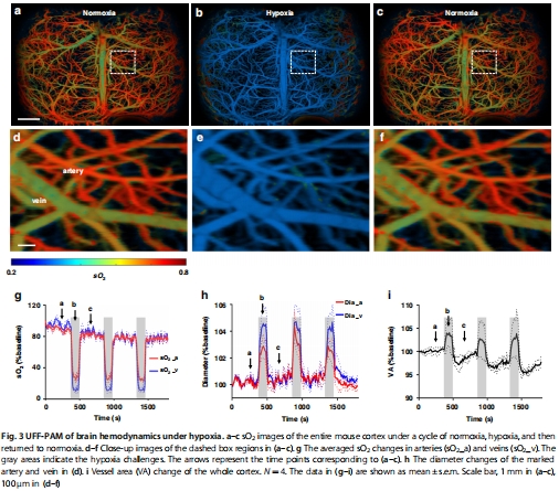 缺氧時靜脈sO?下降85%(動脈下降70%),血管直徑擴張3-4.5%(圖3h)。