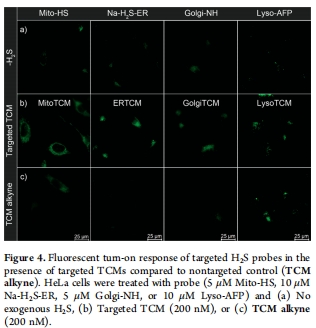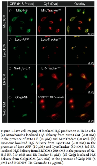 定位成像:使用細(xì)胞器特異性H?S熒光探針(如Mito-HS、Lyso-AFP)確認(rèn)H?S靶向釋放(圖3)。