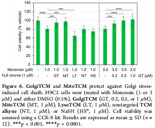 高爾基體靶向供體(GolgiTCM)顯著緩解高爾基應(yīng)激誘導(dǎo)的細(xì)胞死亡(圖6)。