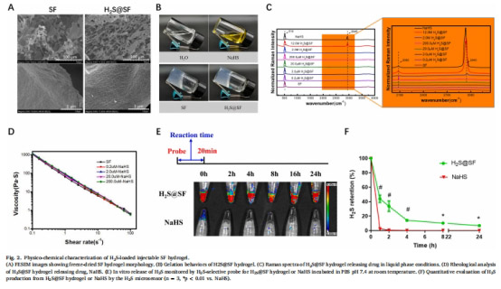 SF水凝膠負載NaHS(H?S供體),濃度優化(0.2-2 wt%)。