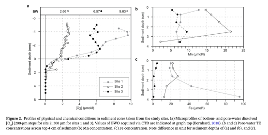 1. 孔隙水溶解Mn和Fe濃度(圖2b,c):