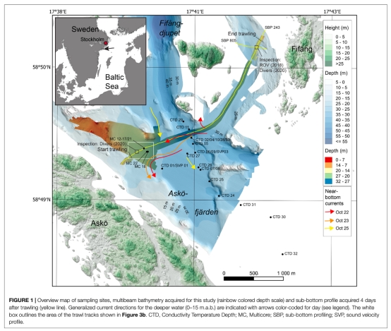 1. 實驗設計:在波羅的海西北部泥質海床(水深20-35米)進行單次拖網作業,對比拖網前、拖網后2小時至4天的變化