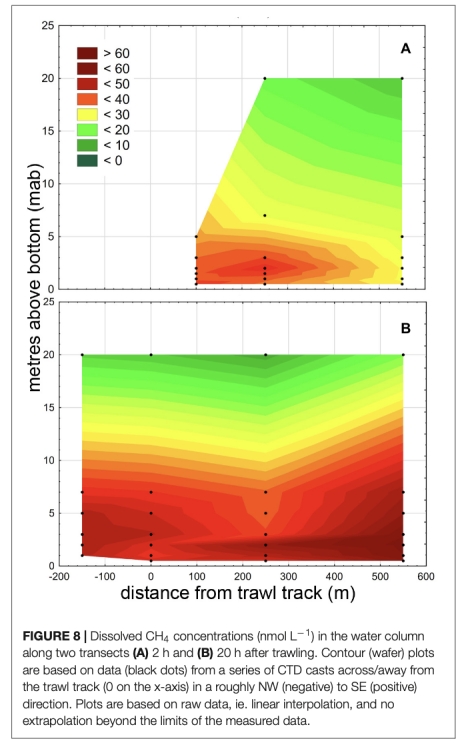 1. 物理擾動:單次拖網形成持續18個月的可探測軌跡(圖3),懸浮沉積物擴散范圍超1公里(圖6)