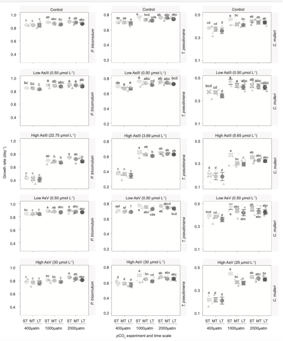? 來源:圖1展示不同pCO?組在砷處理下的生長率對比。