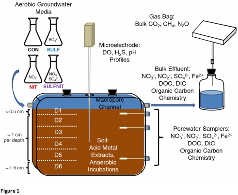 設置4種處理:對照(CON)、加硝酸鹽(NIT)、加硫酸鹽(SULF)、混合添加(SULFNIT),持續40天。