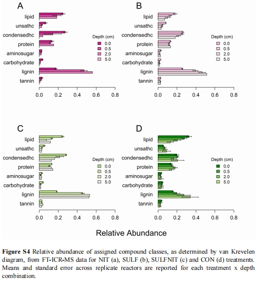 NEXAFS顯示酚類/酰胺基團在厭氧區相對豐度增加(圖S6)。