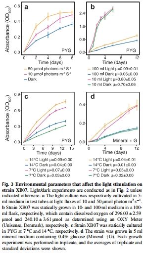 光響應的環境依賴性:光促進效應在低氧(溶解氧<240 μmol)或寡營養條件下最顯著,與冰川生境特征匹配。