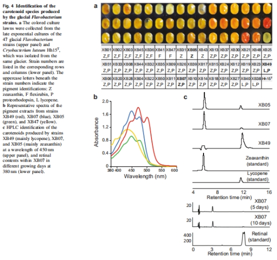 解析冰川細菌的光適應機制:探究色素(尤其是玉米黃質)在冰川黃桿菌應對低溫、強光輻射環境中的功能。